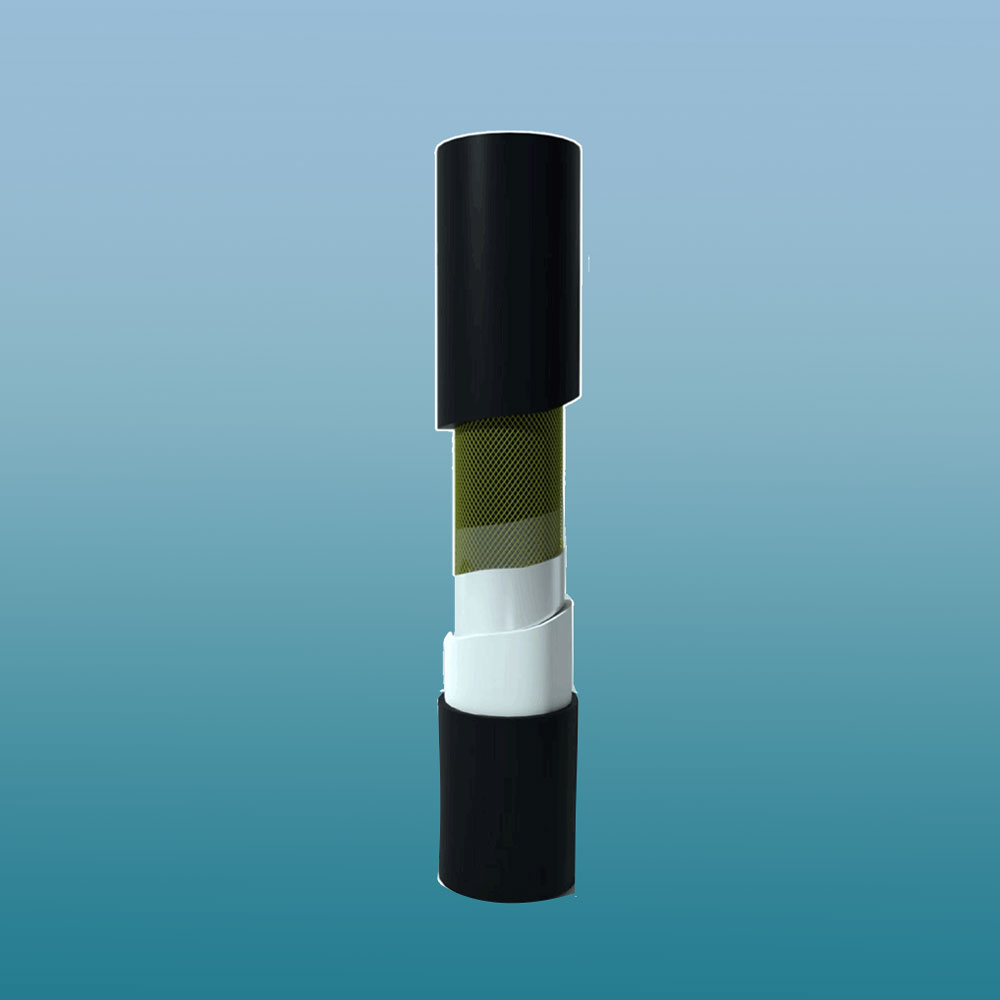 玄武巖纖維纏繞增強聚乙烯復合(CBF-PE)管 以聚乙烯為基體,以粘接樹脂包覆處理后的玄武巖纖維左右連續螺旋纏繞成型的網狀